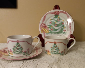 Sango Home For Christmas Four Cup And Saucers Sets Etsy De