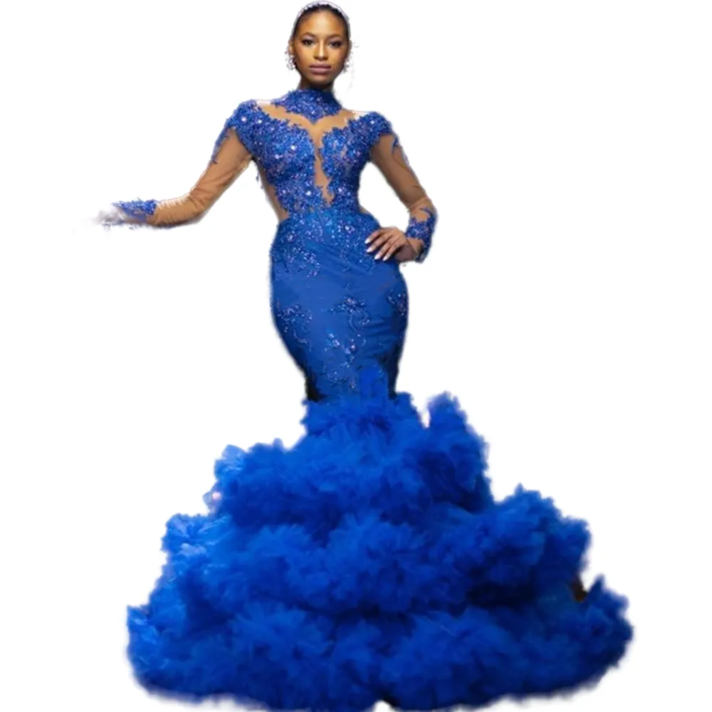 Royal Blue Mermaid Blue Prom Dresses 2023 With Puffy Tiered Skirt Long Sleeves And High Neckline Perfect For Formal Evening Events Pageants Or Special Occasions In 2022 From Sexybride 168 27 Dhgate Com